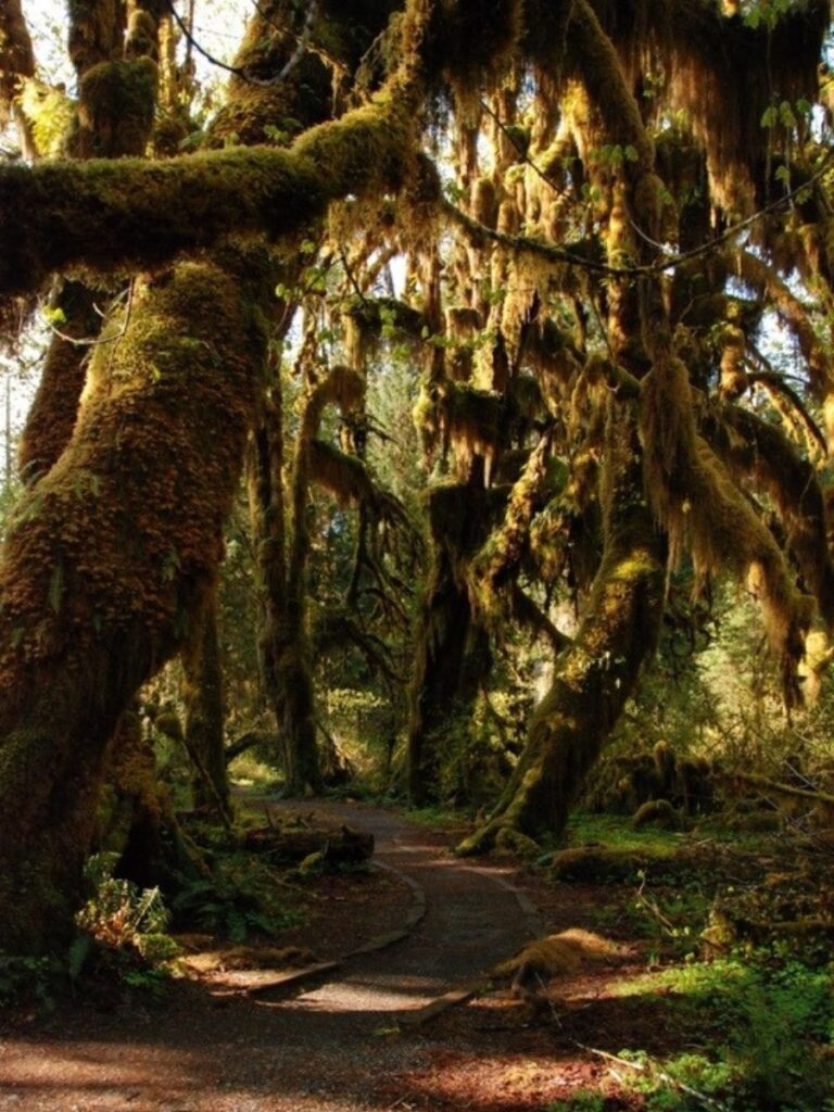 - Hall of Mosses Trail: the most popular trail for a reason. It’s short (under a mile), but the scenery looks ancient — old-growth trees, moss curtains hanging overhead, ferns taller than you.