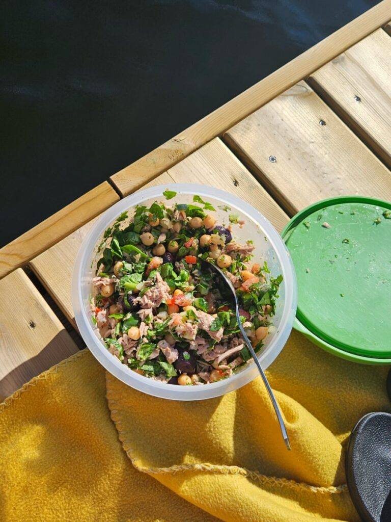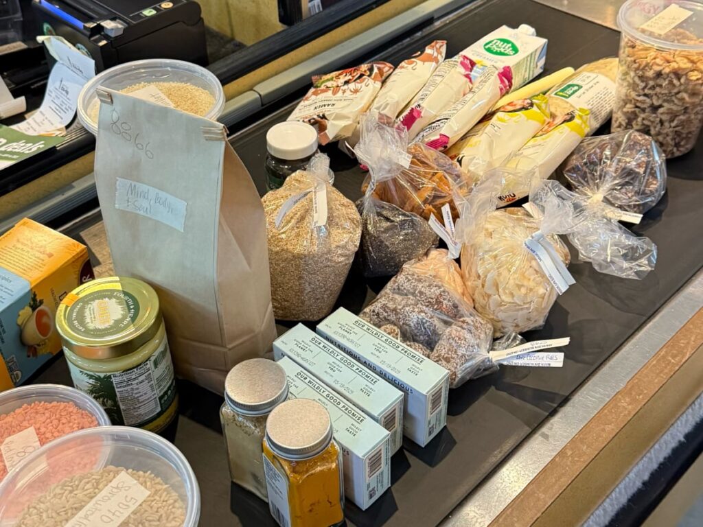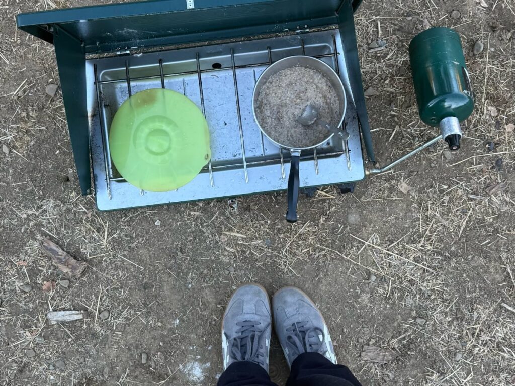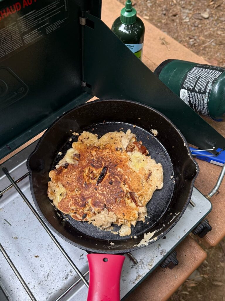 We restocked at small natural grocery stores with bulk sections, keeping our meals centered around hardy produce, grains, legumes, and shelf stable proteins. Cooking on our two burner Coleman stove under the trees reminded us that healthy camp cooking can be simple, flavorful, and deeply satisfying.