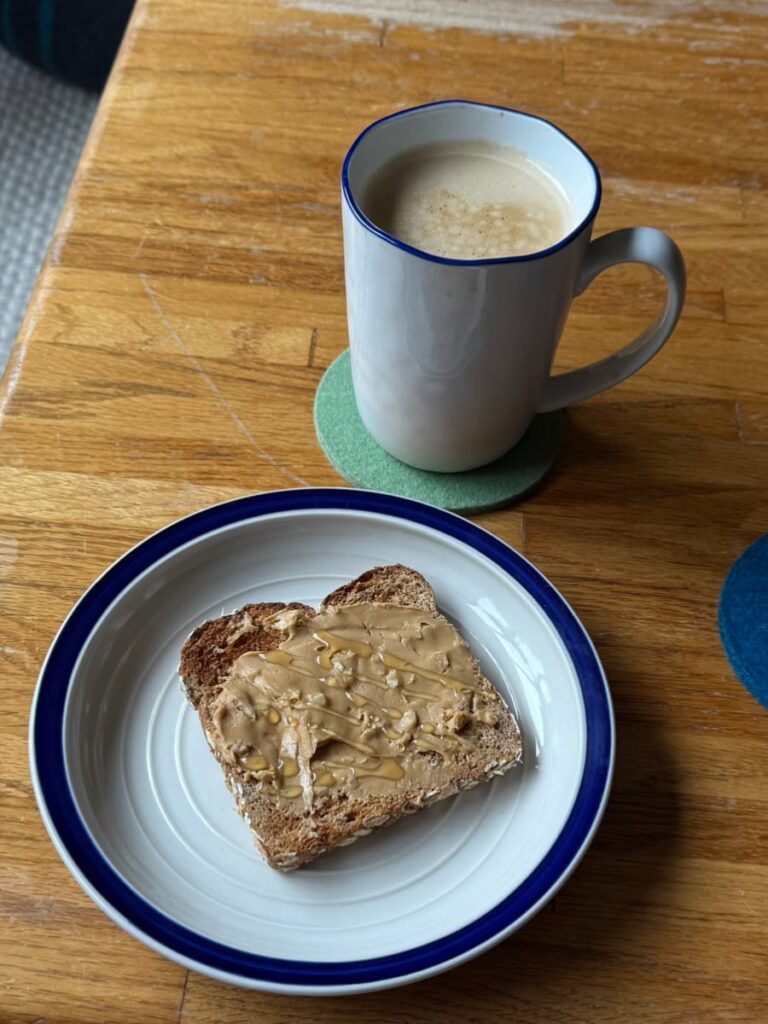 making coffee and breakfast at home before going out all day >