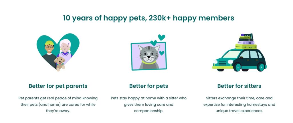 There’s no money exchanged between sitter and homeowner. Both sides pay a membership fee to use the platform, have background checks, and gain something from the trade.