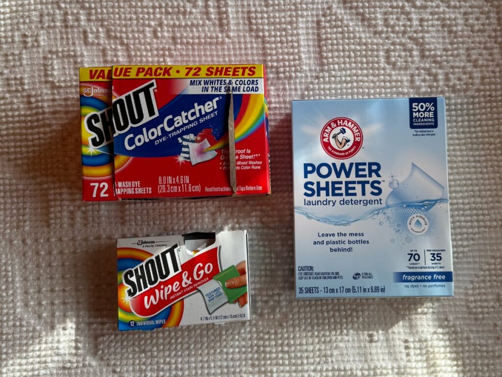 - Shout wipes for larger stains or heavier fabrics