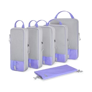 Everything lives in one small packing cube so it is easy to grab and easy to put away.